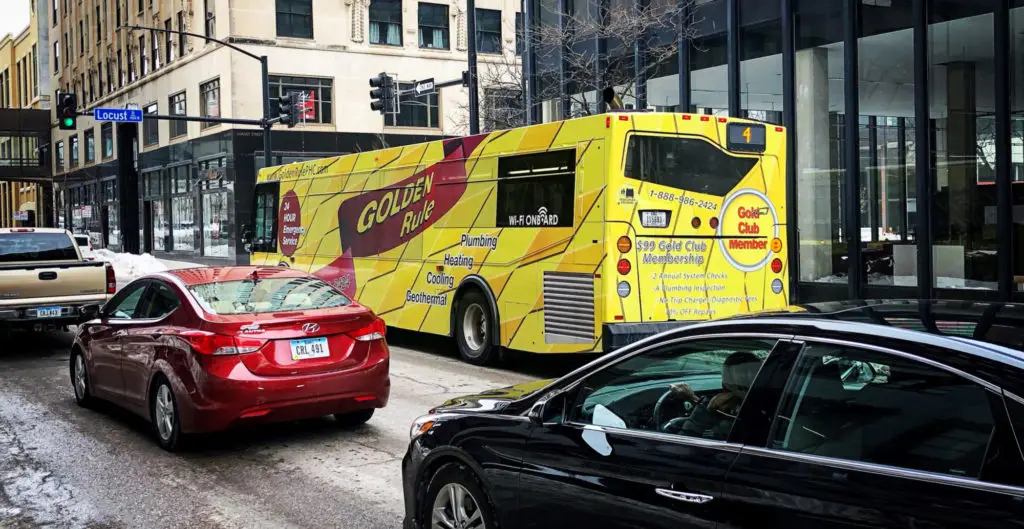 Transit bus ads reach drivers and passengers in cars passing by or sitting in traffic. They also reach the people on the streets walking by or riding their bikes and folks in offices or storefronts. Transit ads can’t be avoided like TV and radio. You can’t skip over or completely ignore those big, bold bus ads passing you in traffic or sitting right in front of you in a traffic jam or at a stop light.
