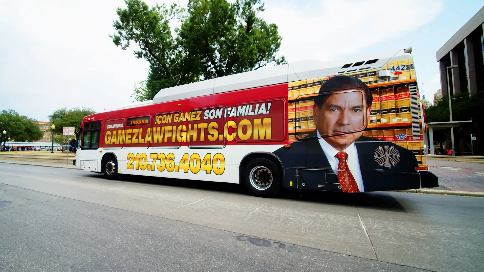 Because of this, you can’t miss buses driving all over Downtown San Antonio. No matter what you’re doing, as a local or tourist, you’re going to see a bus driving by. And that’s just what Gamez law likes to see.